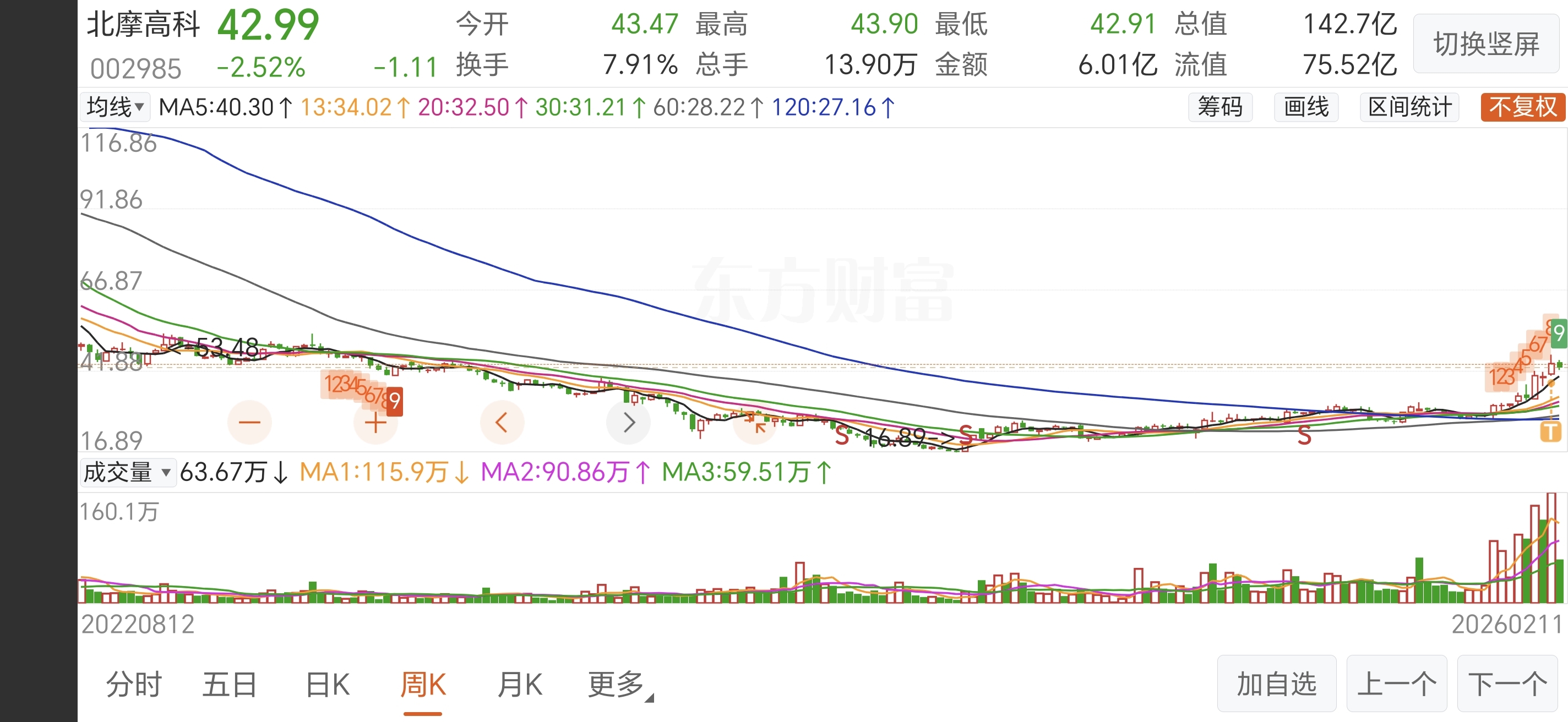 $北摩高科(SZ002985)$ 周线看看