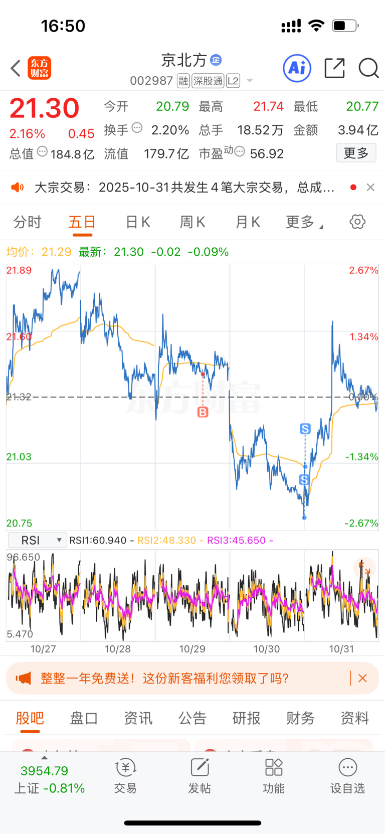 $京北方(SZ002987)$ 拿了2天,今天早上开盘就卖了,赔一点算了