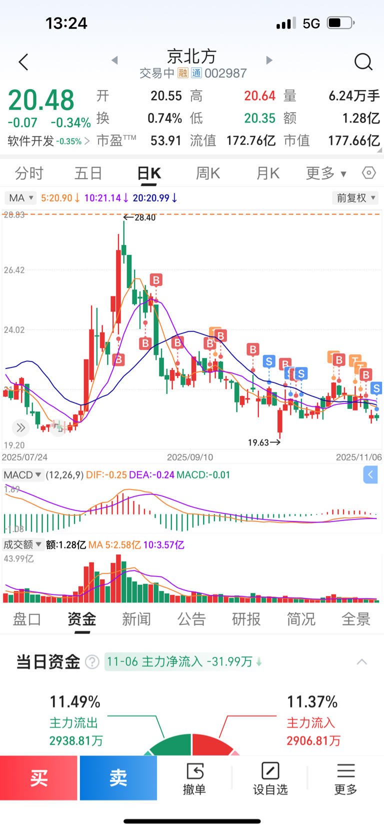 $京北方(SZ002987)$ 一直做反T亏了30个点跑了