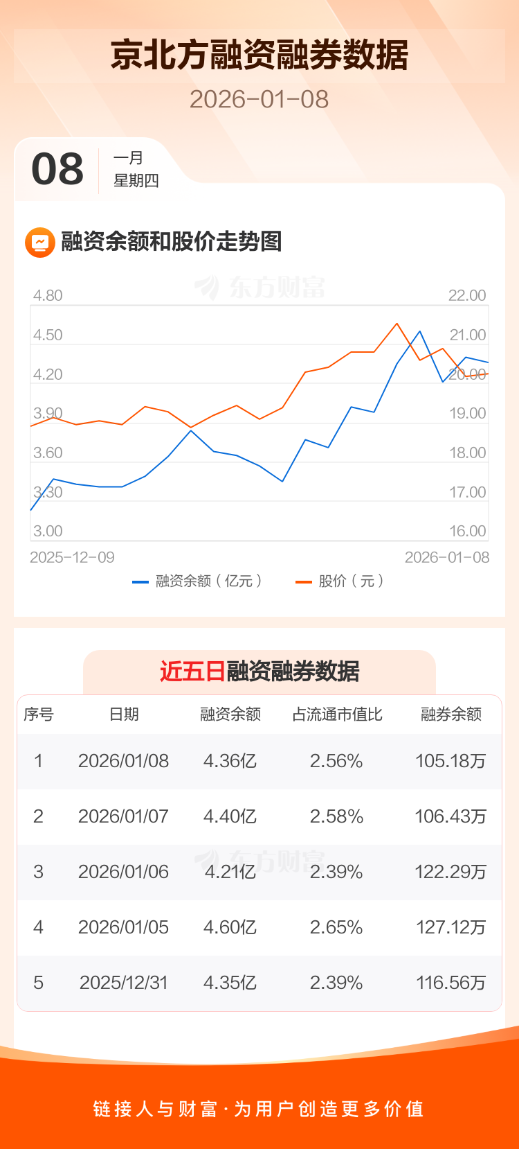 交易所最新数据显示,京北方于2026年1月8日获融资买入2935.73万元,融资偿还3285.41万元,当日融资净偿还349.68万元。目前,该股融资余额4.36亿,占流通市值比例为2.56%。