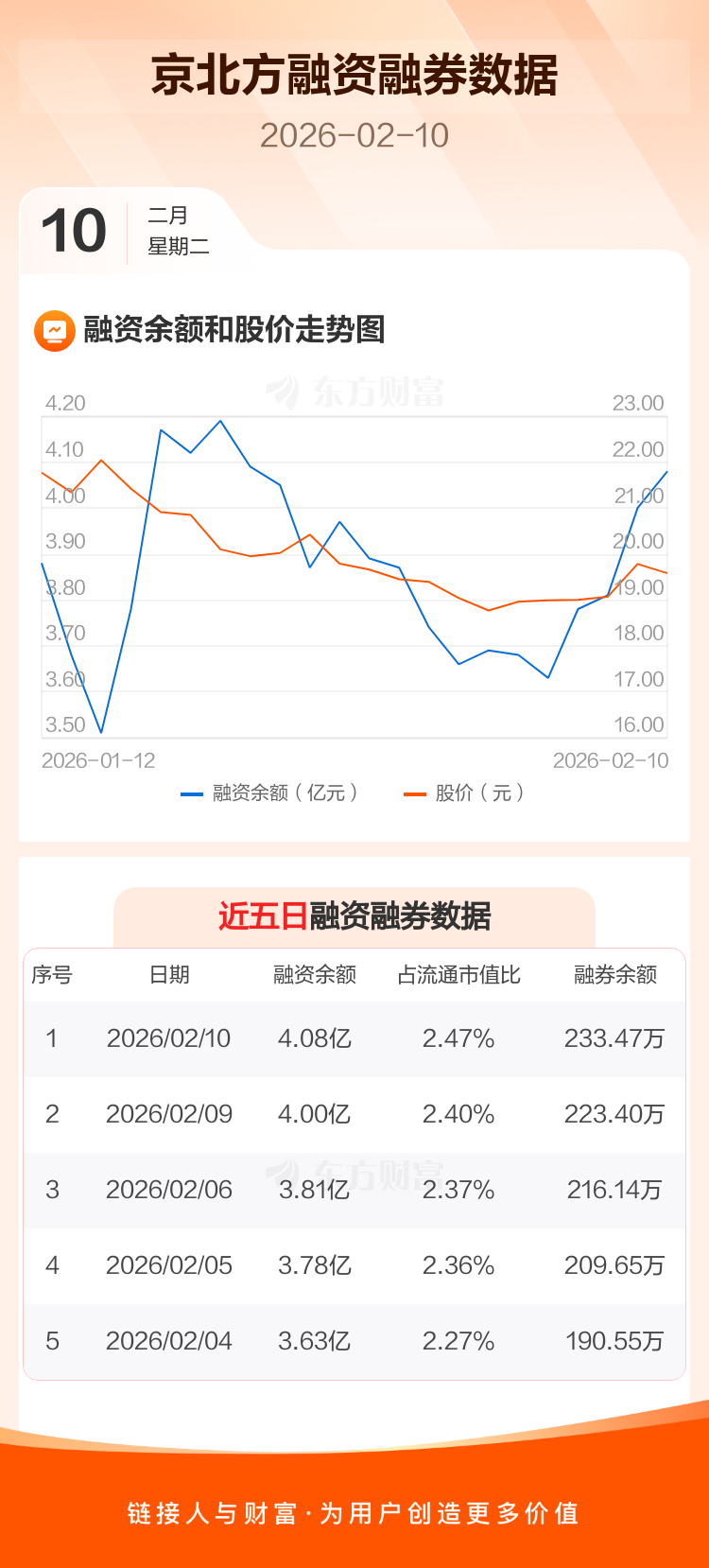 交易所最新数据显示,京北方于2026年2月10日获融资买入1852.51万元,融资偿还1063.78万元,当日融资净买入788.73万元。目前,该股融资余额4.08亿,占流通市值比例为2.47%。