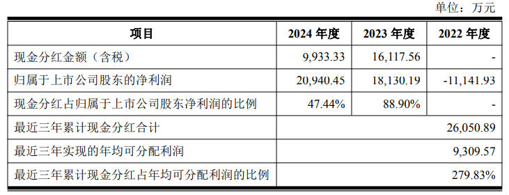 另外,2023年~2024年,公司累计分红2.61亿元。