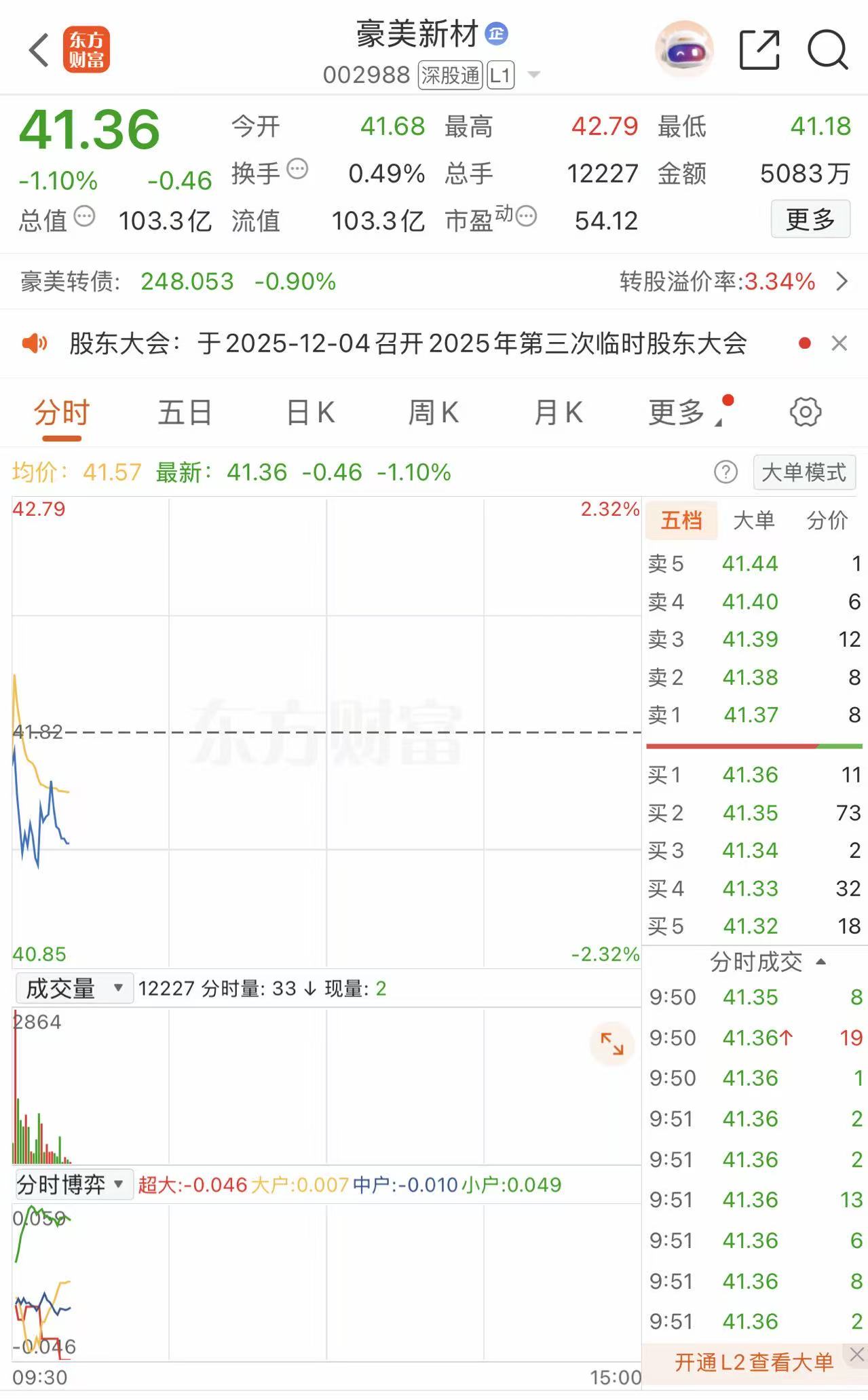 二级市场上,11月18日开盘,豪美新材股价下挫,截至发稿跌1.10%报41.36元/股。