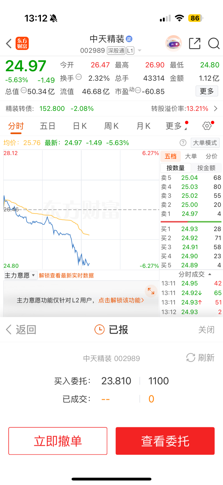 $中天精装(SZ002989)$ 使劲砸,我在跌停板等你,主力你不砸下来,就不要当ren了