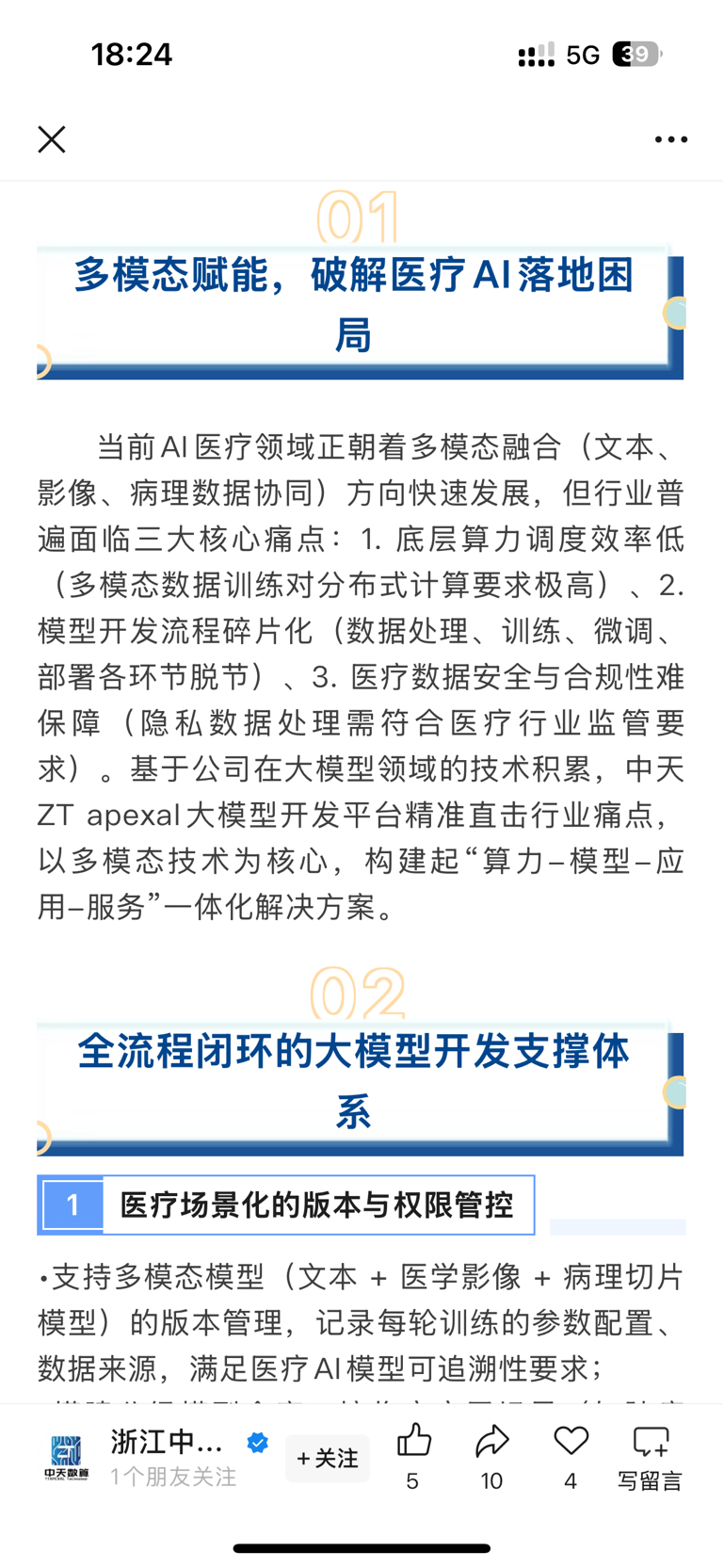 AI医疗/医疗大模型:中天ZT apexal大模型开发平台凭借AI医疗领域的创新成果入选权威成果库,属于医疗AI赛道的核心标的范畴。