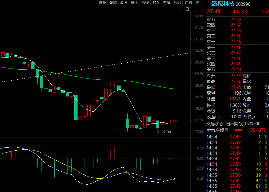 一只股票最大的利好就是跌幅够大,调整时间够充分。盛世60分钟底背离已成,不敢说这里是底,但9日开盘的反弹 还是大概率,所以今天继续加仓。如果开盘来个5日线上高开,那就更牛X了,直接岛型反转。开盘就看你放不放量了,放量格局缩量T,期待!