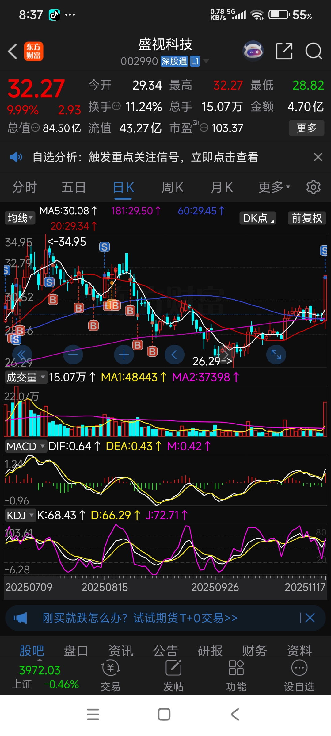 $盛视科技(SZ002990)$ 涨停板走了,祝留下的发财,我怕明天低开