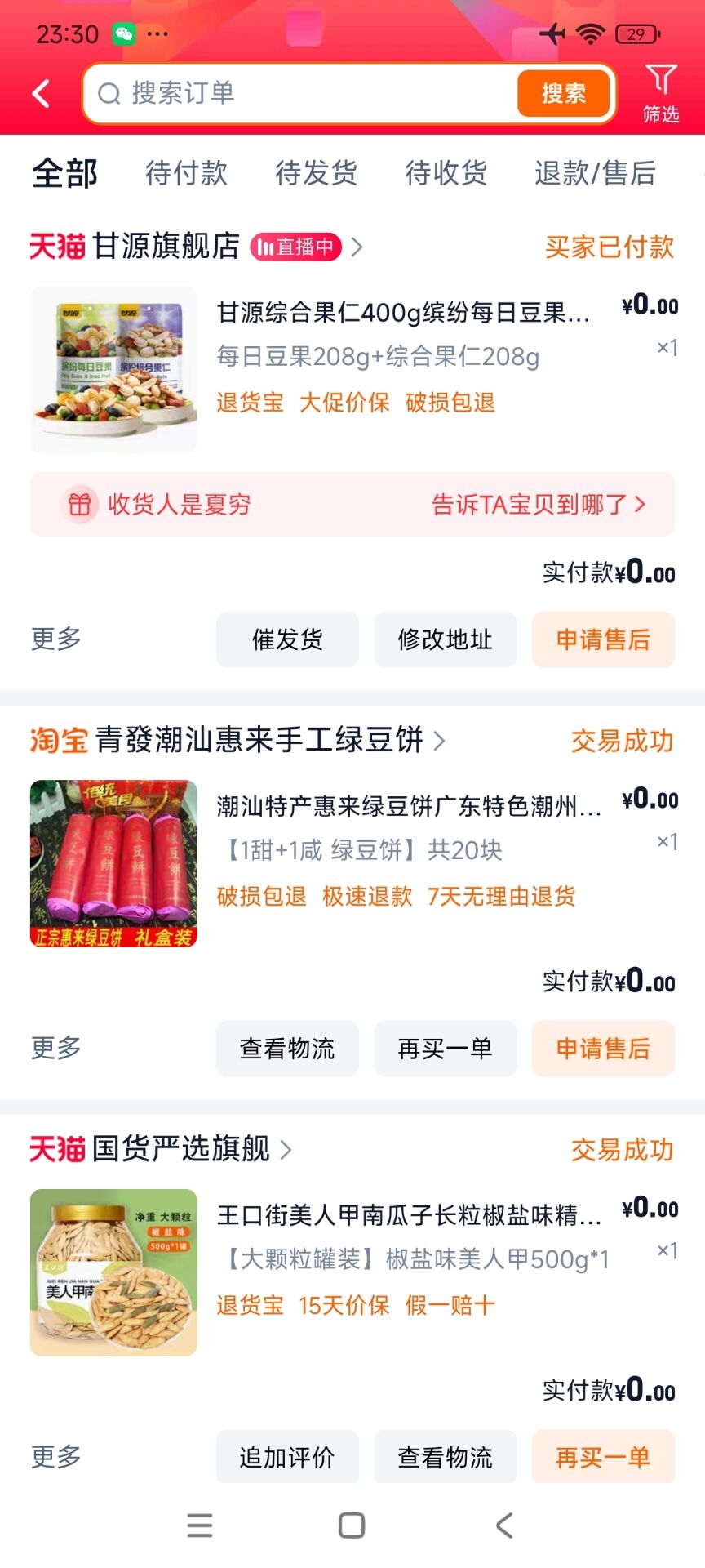 双11了,买点甘源零食支持一波,加油……奥利给