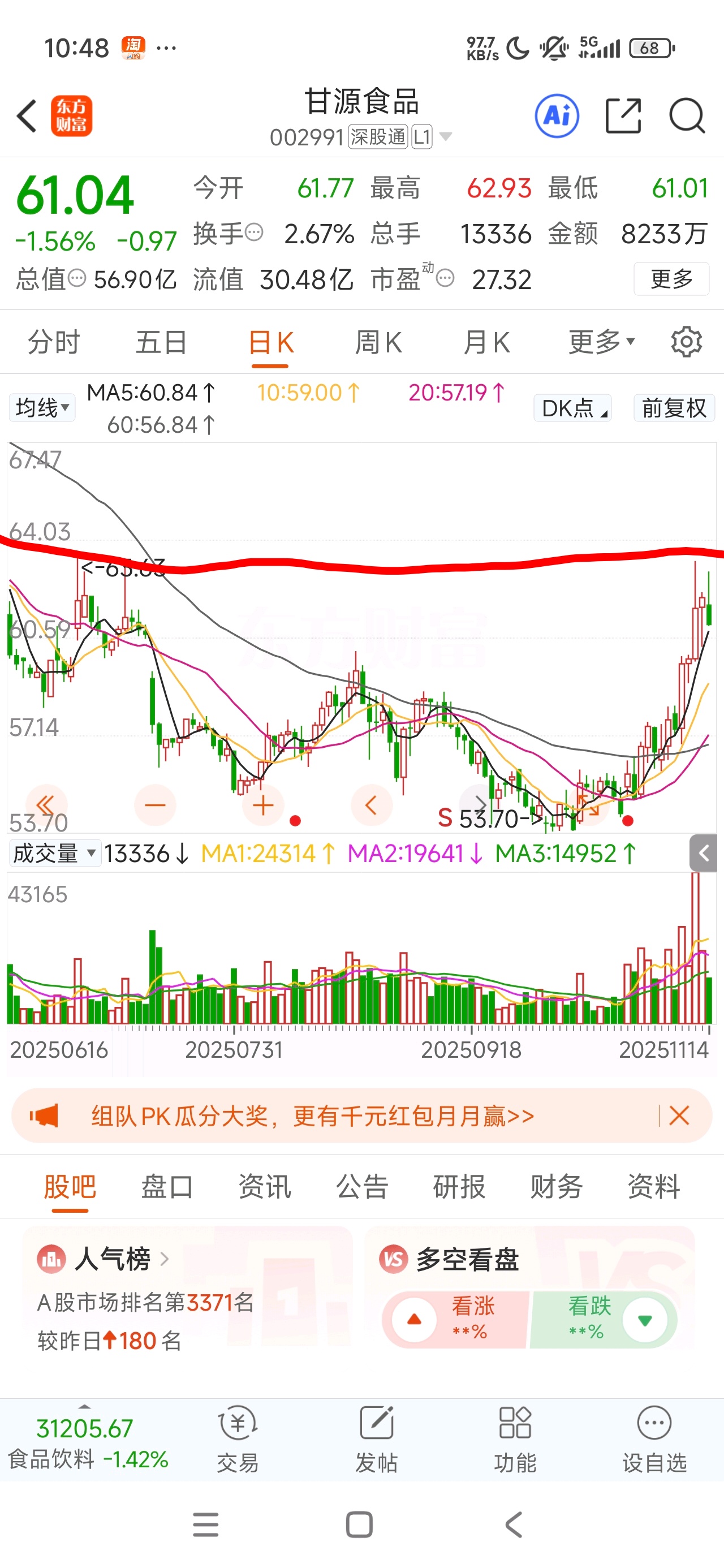 $甘源食品(SZ002991)$ 重磅,双针触顶重复去年走势。甘源将再次进入下跌趋势。