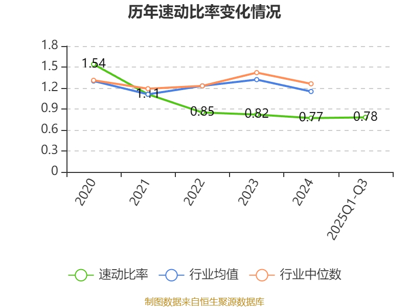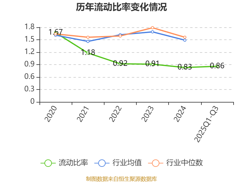 2025年前三季度,公司流动比率为0.86,速动比率为0.78。