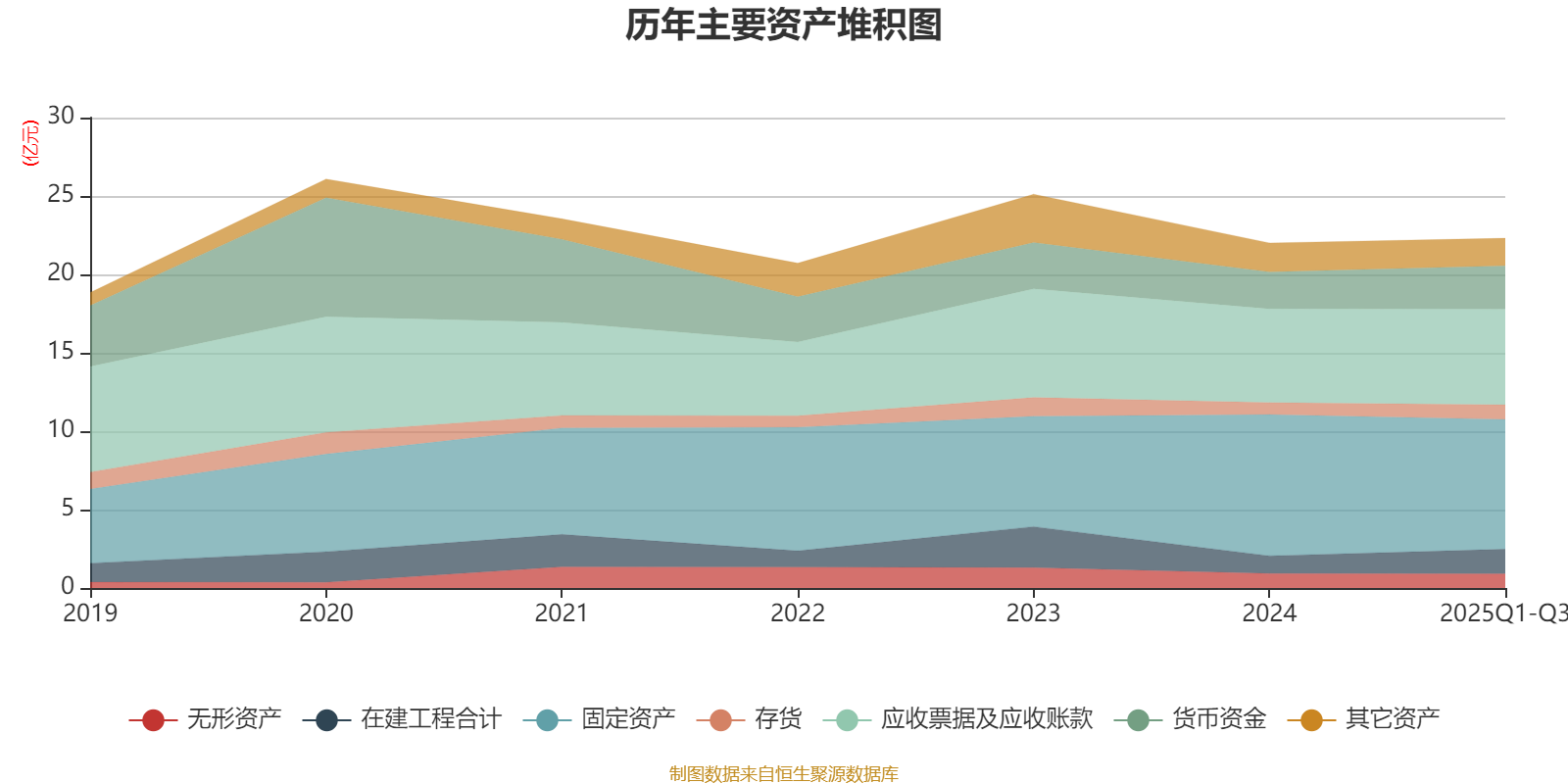 资产重大变化方面,截至2025年三季度末,公司固定资产较上年末减少8.1%,占公司总资产比重下降3.82个百分点;在建工程合计较上年末增加39.9%,占公司总资产比重上升1.95个百分点;货币资金较上年末增加17.6%,占公司总资产比重上升1.72个百分点;应收款项融资较上年末减少43.75%,占公司总资产比重下降1.45个百分点。