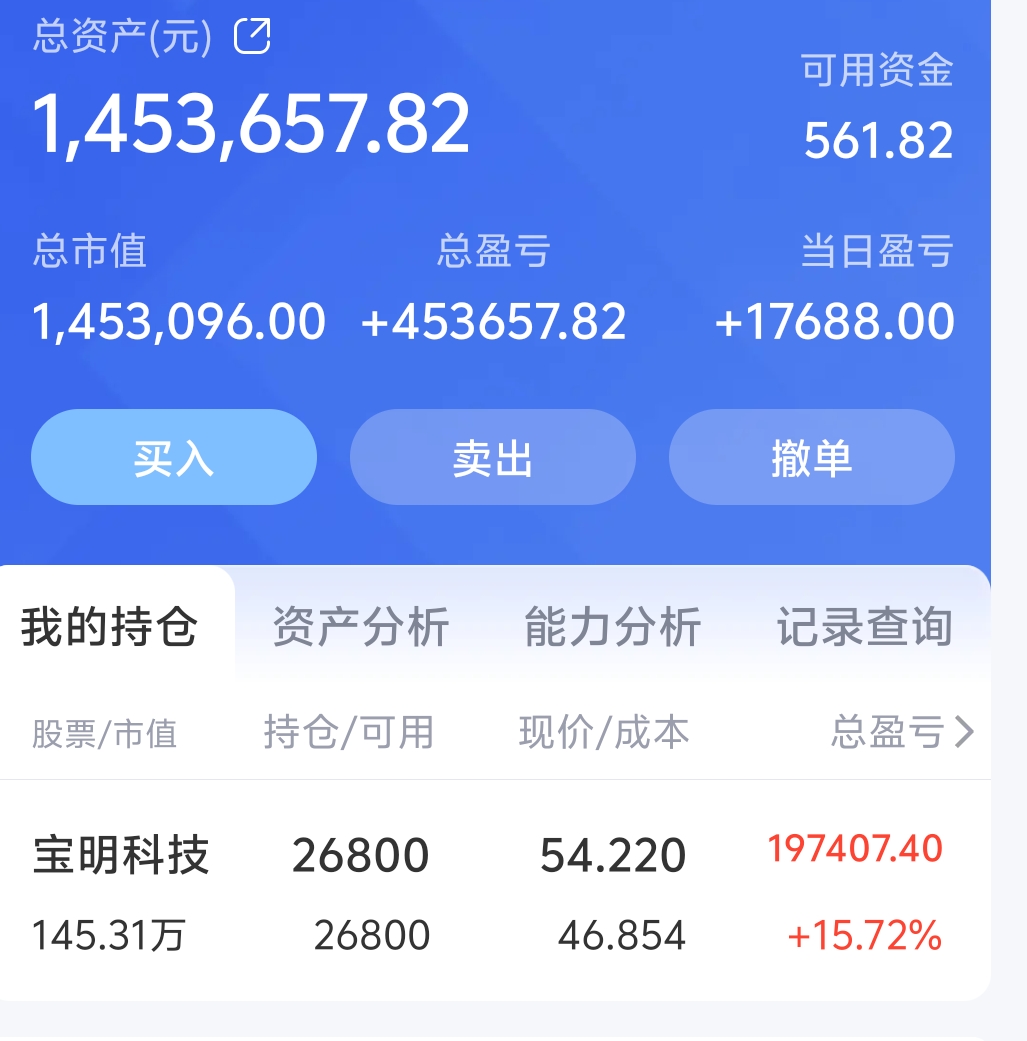 $宝明科技(SZ002992)$ 飞一般的感觉