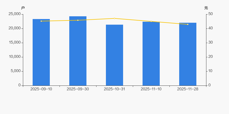 2025年9月10日至今,公司股东户数有所下降,区间跌幅为5.56%。2025年9月10日至2025年11月28日区间股价下降5.05%。