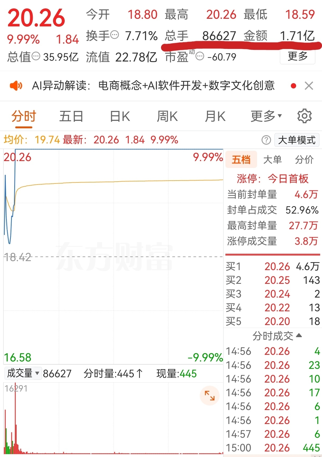 成交1.71亿,超大单流入0.72亿,占比42%!望主力不可沽名学霸王,每次一个