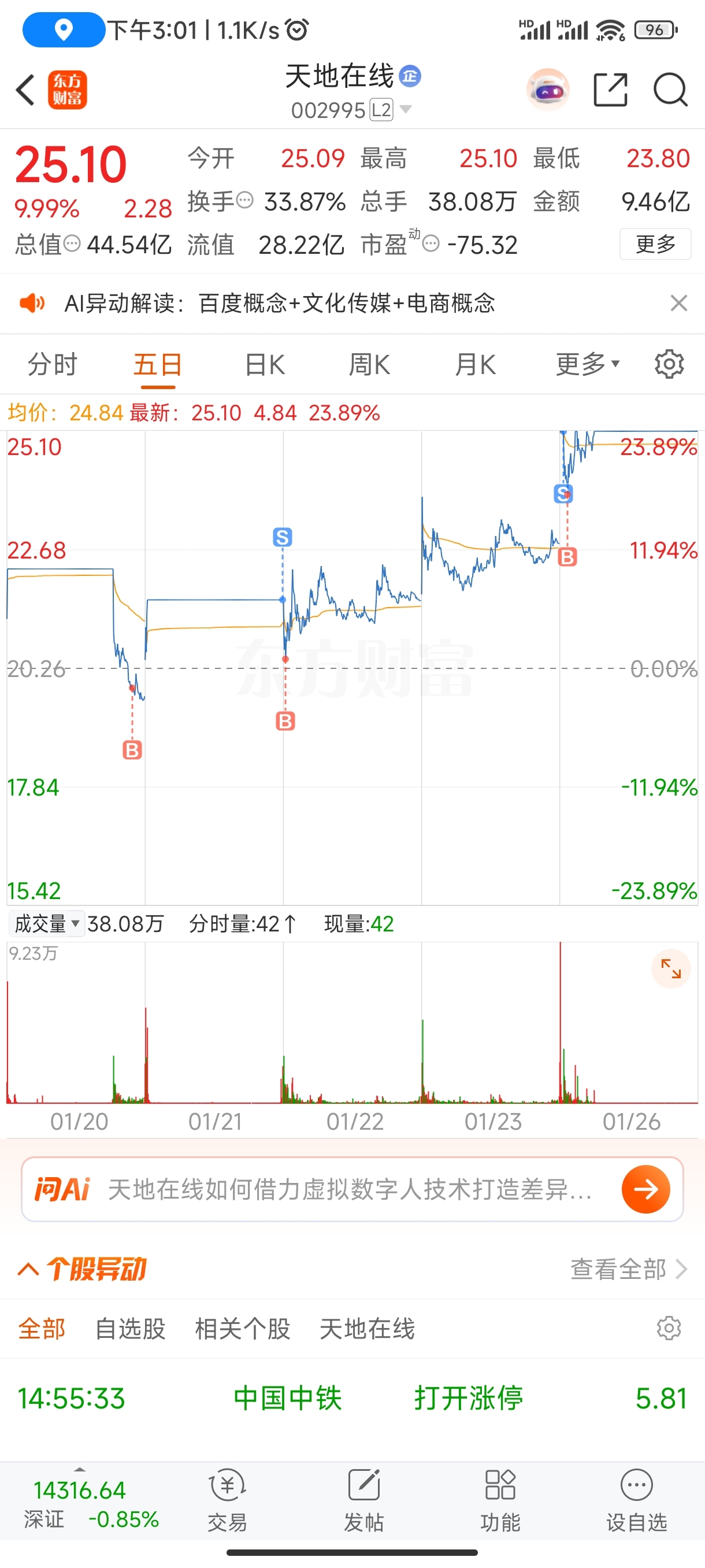 $天地在线(SZ002995)$ 这票特别适合做t,不怕卖飞,每天都能上车。