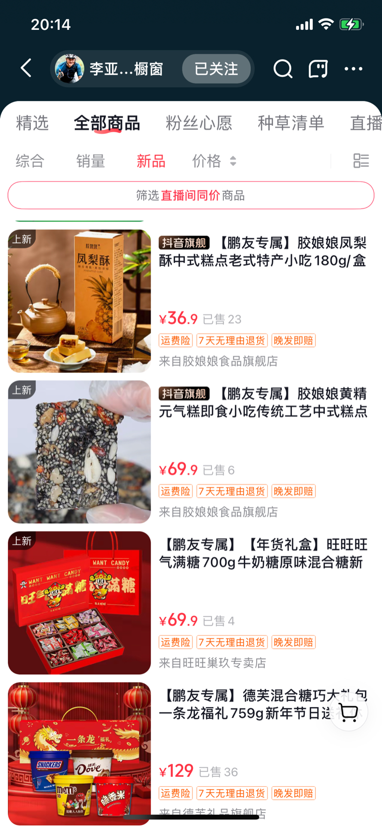 周五晚上第二场直播,这次橱窗新加了几款日常食品,后面随着选品越来越大众化,相信销