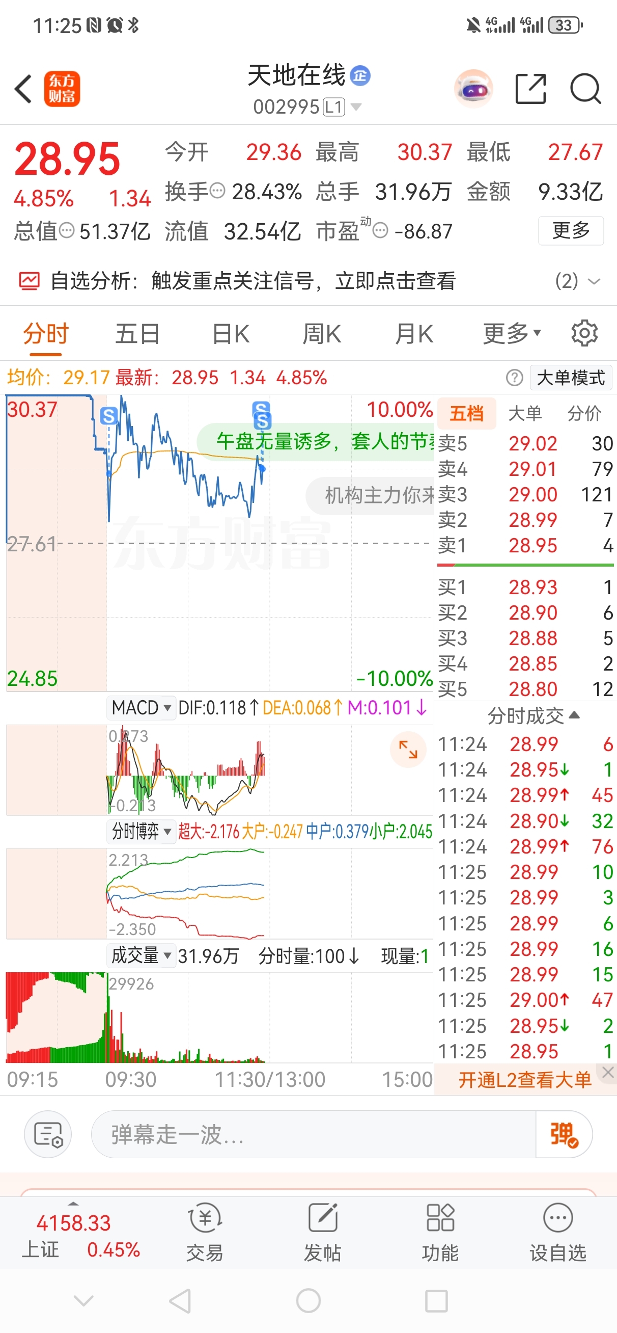 $天地在线(SZ002995)$ 下午有动作跟随点火先走了