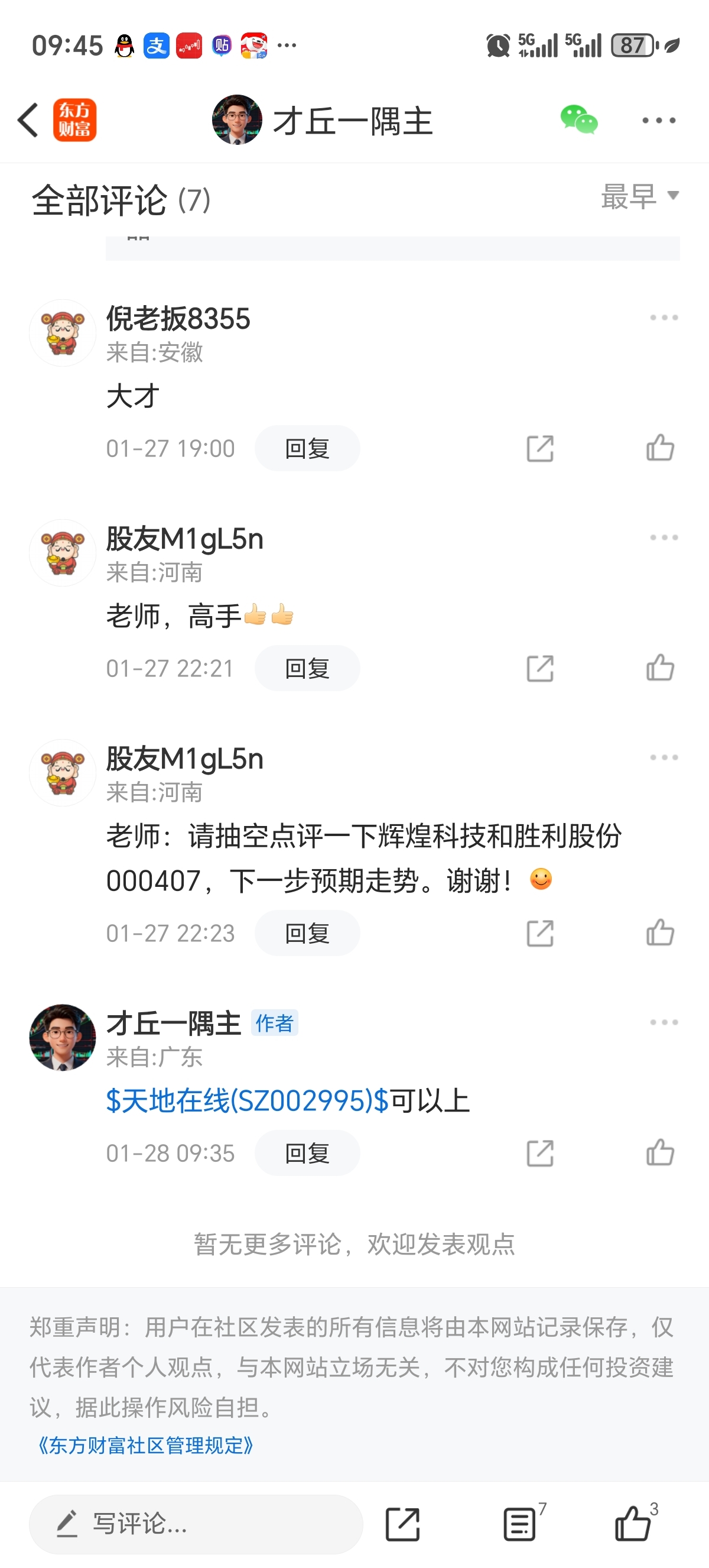 温馨提示: 1.根据《证券法》规定,禁止编造、传播虚假信息或者误导性信息,扰乱证券市场;2.用户在本社区发表的所有资料、言论等仅代表个人观点,与本网站立场无关,不对您构成任何投资建议。用户应基于自己的独立判断,自行决定证券投资并承担相应风险。《东方财富社区管理规定》