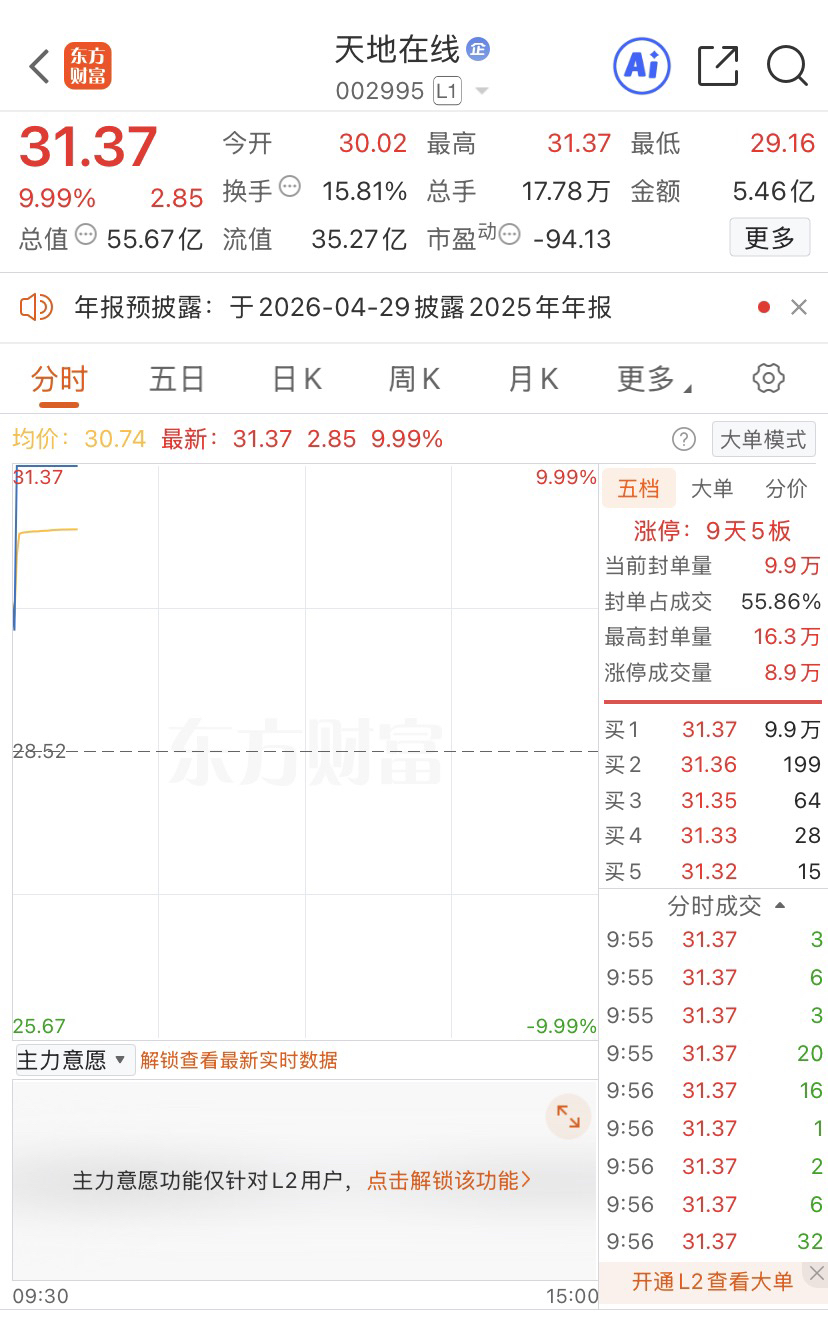 早盘股天地在线快速涨停,恭喜介入的铁粉些收获涨停板,点赞点起来