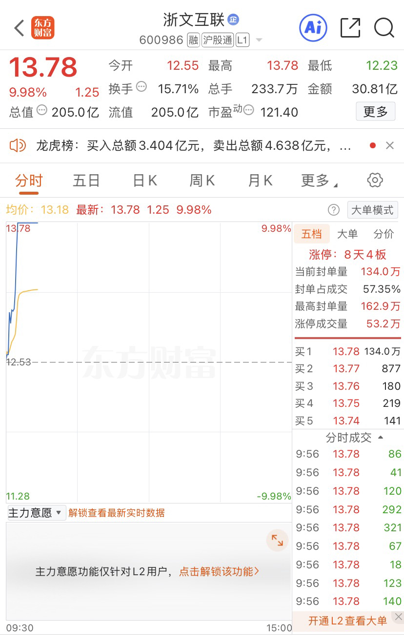 昨天早盘股浙文互联今天也收获涨停板,恭喜介入的铁粉些收获涨停板没有亏钱了!!大家财源广进加油!!