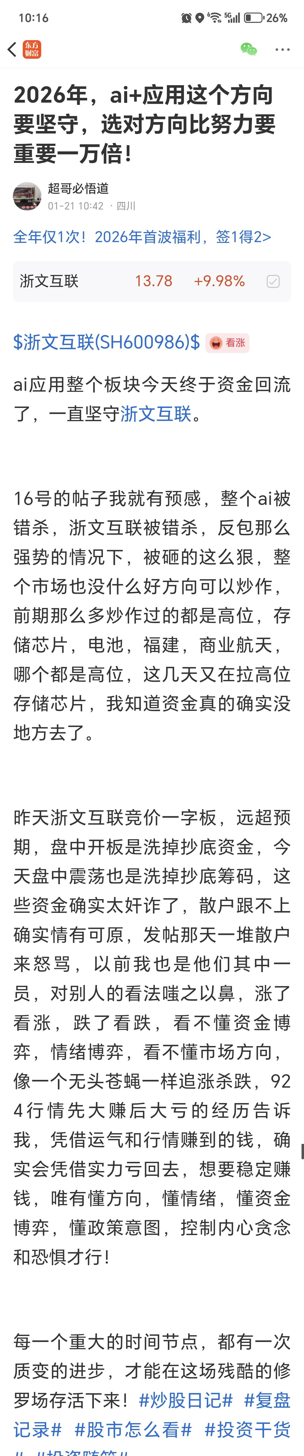 一直坚守浙文互联和天地在线,从16号之前就没有动摇过,2026年,ai肯定是主线