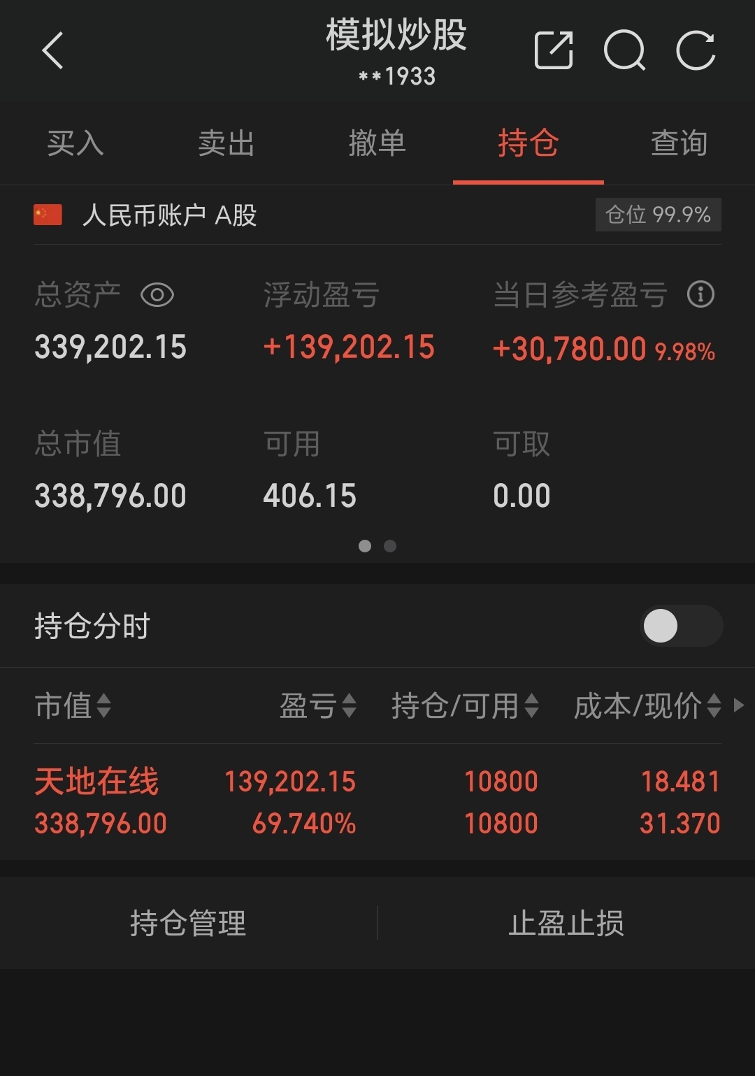 $天地在线(SZ002995)$ 没绷住,实盘没拿住卖飞了,模拟盘快翻倍了