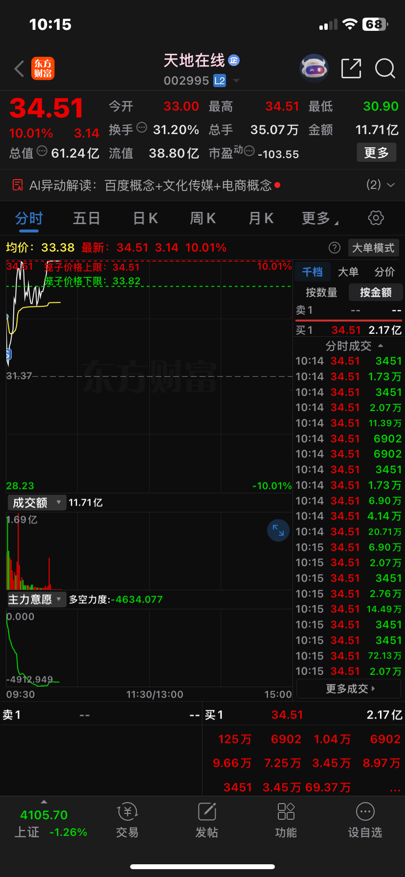 竞价恐慌,天地在线有些低于预期,留下的兄弟们周一应该能享受更高的溢价
