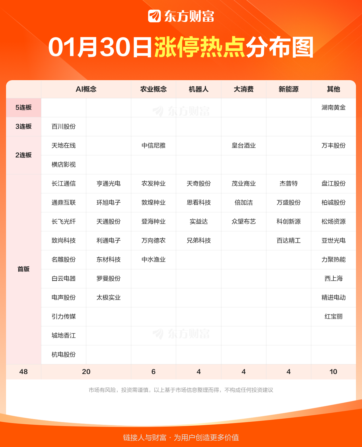 1 转基因 农业农村部强调种业振兴攻坚阶段,推动种业科技自立自强,叠加玉米等粮价稳中有升预期,提升种植板块景气度。 相关个股:$秋乐种业(920087)$、$万向德农(600371)$、$登海种业(002041)$、$敦煌种业(600354)$、$农发种业(600313)$(3天2板) 2 光纤概念 AI算力基建需求旺盛带动光纤需求增长,Meta等科技巨头加大光纤采购投入。 相关个股:$致尚科技(301486)$、$太辰光(300570)$、$天孚通信(300394)$、$长江通信(600345)$、$长飞光纤(601869)$ 3 CPO概念 英伟达H200人工智能芯片需求推动CPO技术应用,相关企业技术突破与市场预期提升 相关个股:$炬光科技(688167)$、$太辰光(300570)$、$罗博特科(300757)$、$天孚通信(300394)$、$长飞光纤(601869)$ 4 粮食概念 多省份强化粮食安全保障政策叠加大宗商品涨价预期,推动粮食概念板块走强。 相关个股:$神农种业(300189)$、$登海种业(002041)$、$敦煌种业(600354)$、$农发种业(600313)$(3天2板)、$康农种业(920403)$ 5 商业航天 商业航天产业快速发展,太空光伏、卫星组网等新兴领域需求增长,SpaceX上市预期及中国申报超20万颗卫星星座规划共同推动热度。 相关个股:$长江通信(600345)$、$富士达(920640)$、$高华科技(688539)$、$北摩高科(002985)$、$泰豪科技(600590)$市场热点