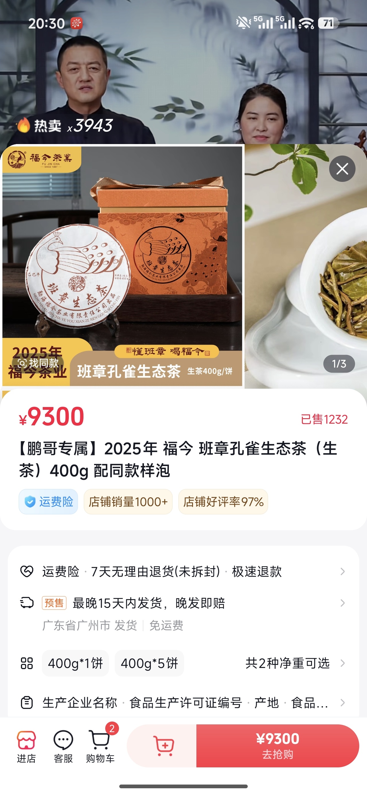今天直播感觉超预期啊,9300的茶,一千多单秒没!