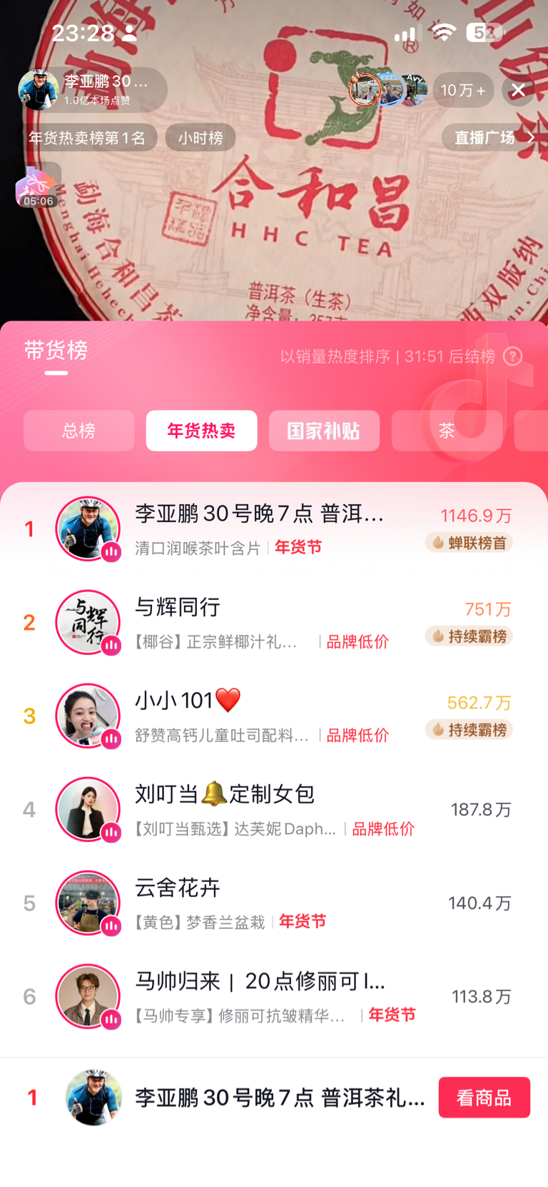 $天地在线(SZ002995)$ 不用比董宇辉强,就跟董宇辉一样,持股的股权就够现在的天地翻倍了,再加上利润的分成,26年的利润会非常可观,现在李亚鹏的带货能力还没被发掘,打赏也没开,抖音是不怎么推流的,一天到晚卖茶,哪怕卖茶有局限性这个热卖榜也基本是12两名,但是有一说一茶的利润是很高的。希望后期能发掘一下,选选别的品类,带货一哥指日可待