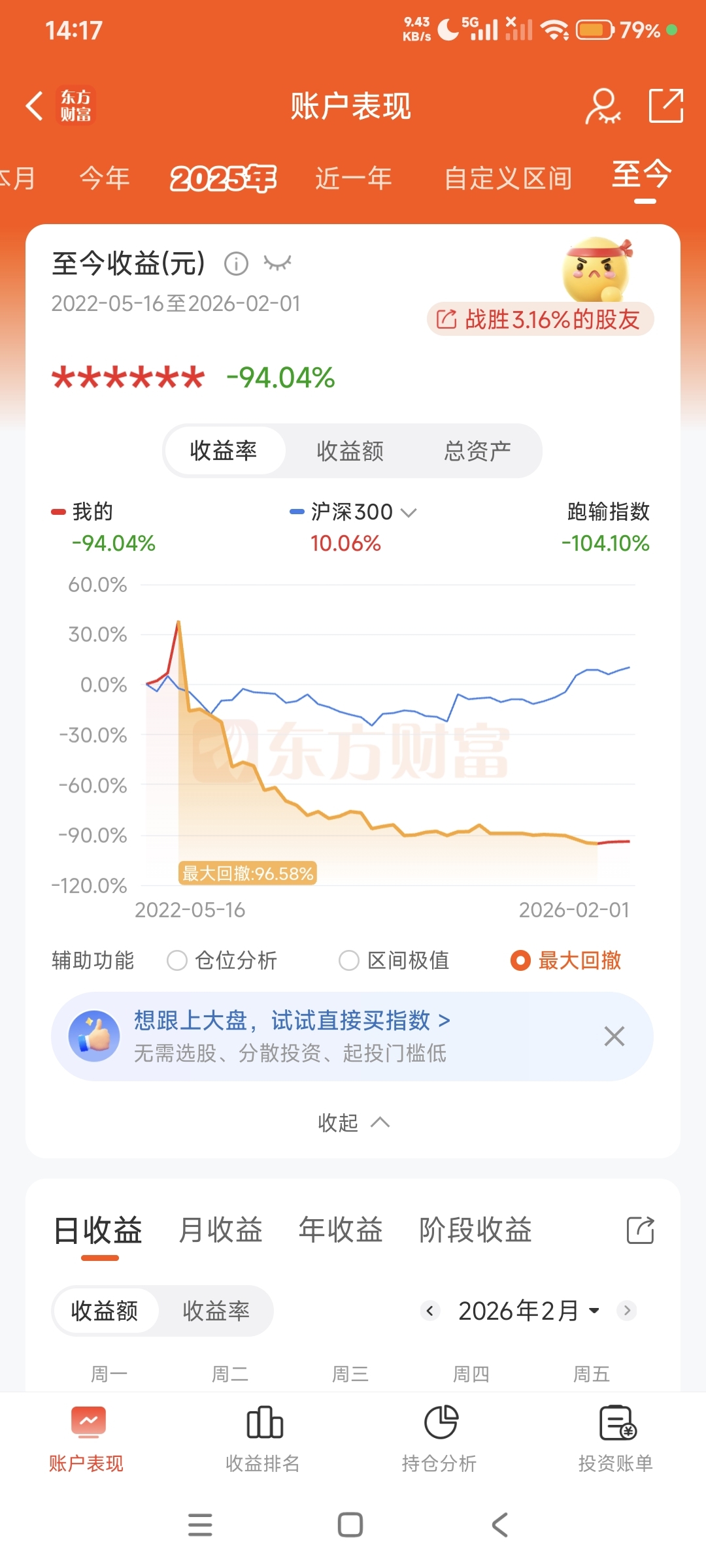我作为老股民是不可能靠自己本金翻身的,新股民们你们也不可能靠自己经验不成为下一个巨亏,话不多说亏损的新股民来与我这个老股民合作一起让天天忽悠人自己炒的水军把我们的钱从嘴里吐出来。
