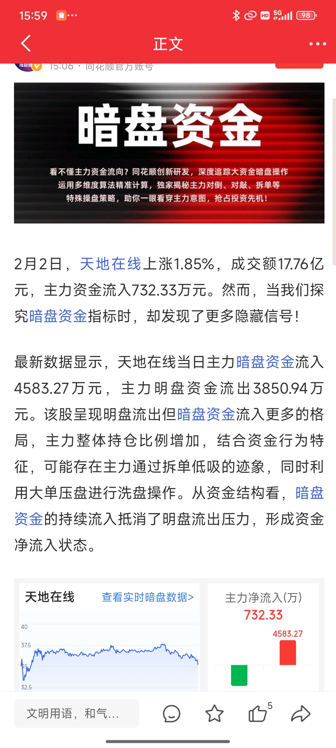 $天地在线(SZ002995)$ 暗盘资金情况,大家不要慌