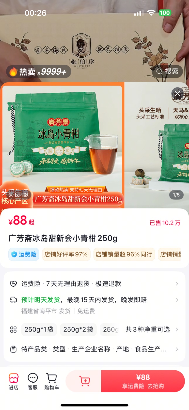 小青柑单款12万单。这款过5000万了吧……一般都是2袋。还有5袋的订单。