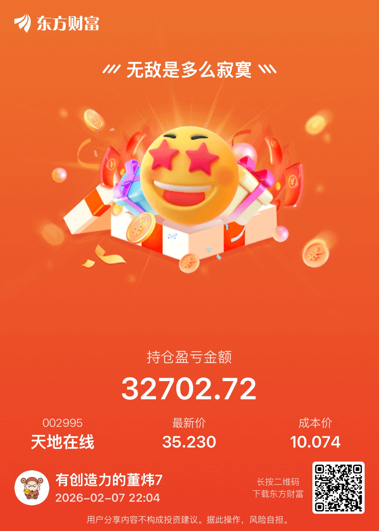 温馨提示: 1.根据《证券法》规定,禁止编造、传播虚假信息或者误导性信息,扰乱证券市场;2.用户在本社区发表的所有资料、言论等仅代表个人观点,与本网站立场无关,不对您构成任何投资建议。用户应基于自己的独立判断,自行决定证券投资并承担相应风险。《东方财富社区管理规定》