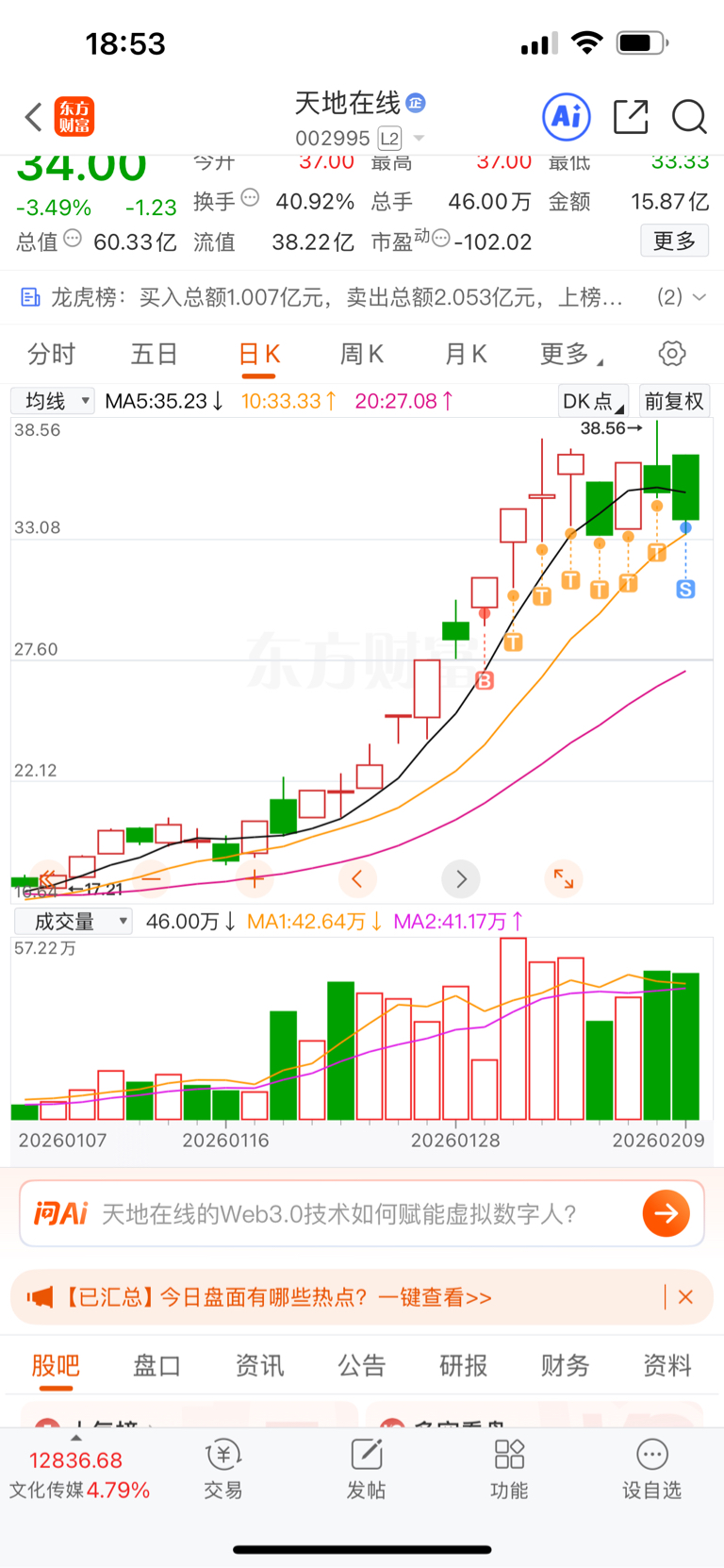 $天地在线(SZ002995)$ 这票我是今天最低点卖的。
