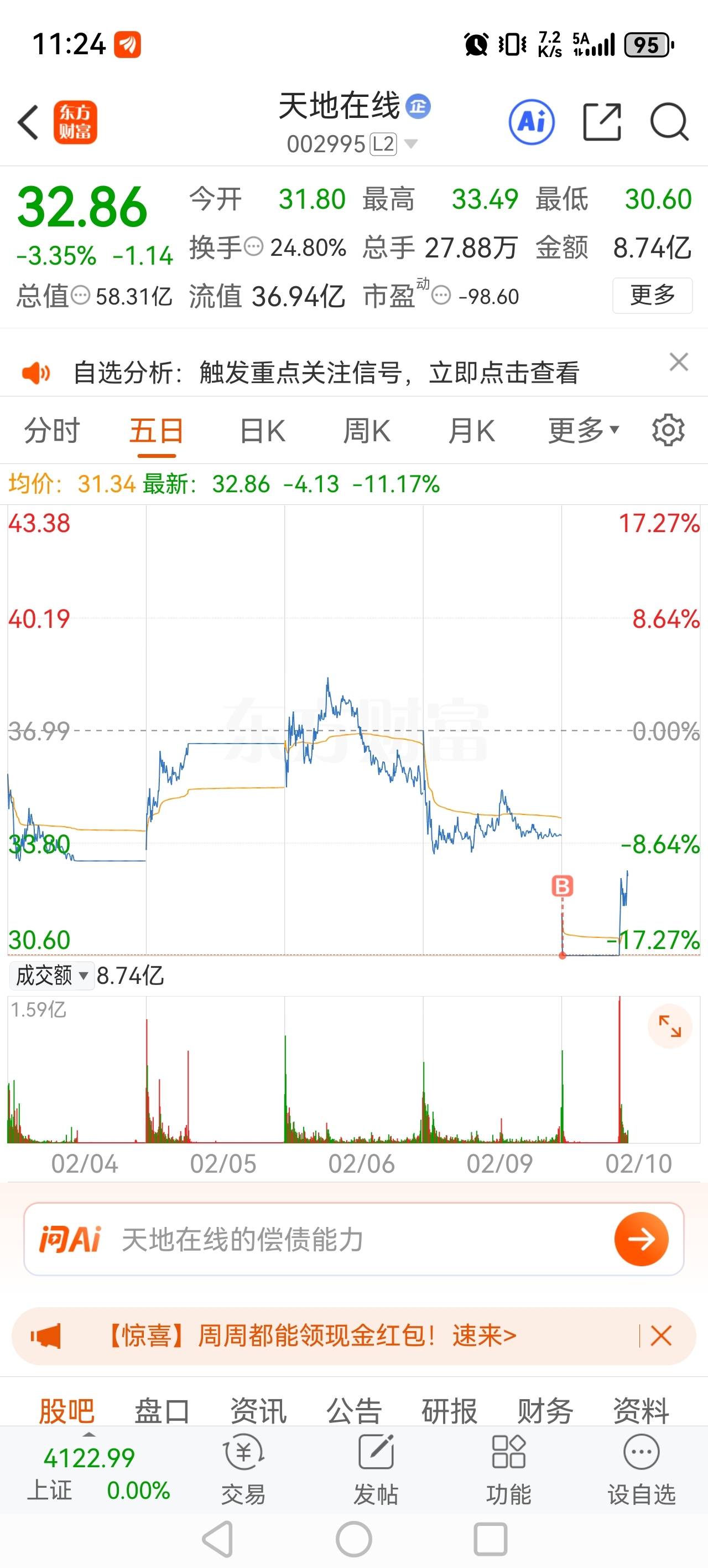 $天地在线(SZ002995)$ 还说拿个先手明天大低开进大仓做T的,你这就拉起来了?了小仓位明天没得做你了!