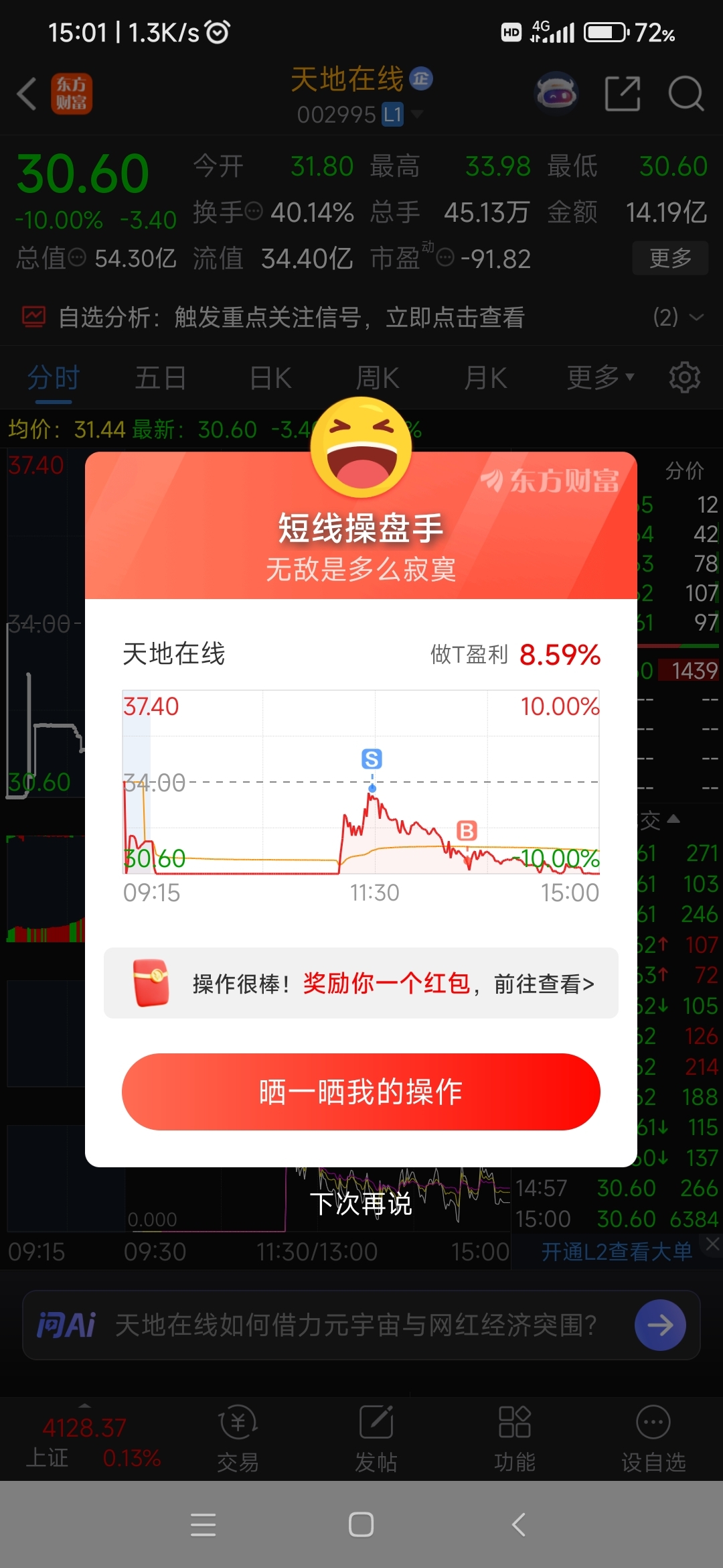 无敌是多么寂寞。。。手欠,寄望明天涨停!实说大命不死已经幸运了,又回头去接刀,真