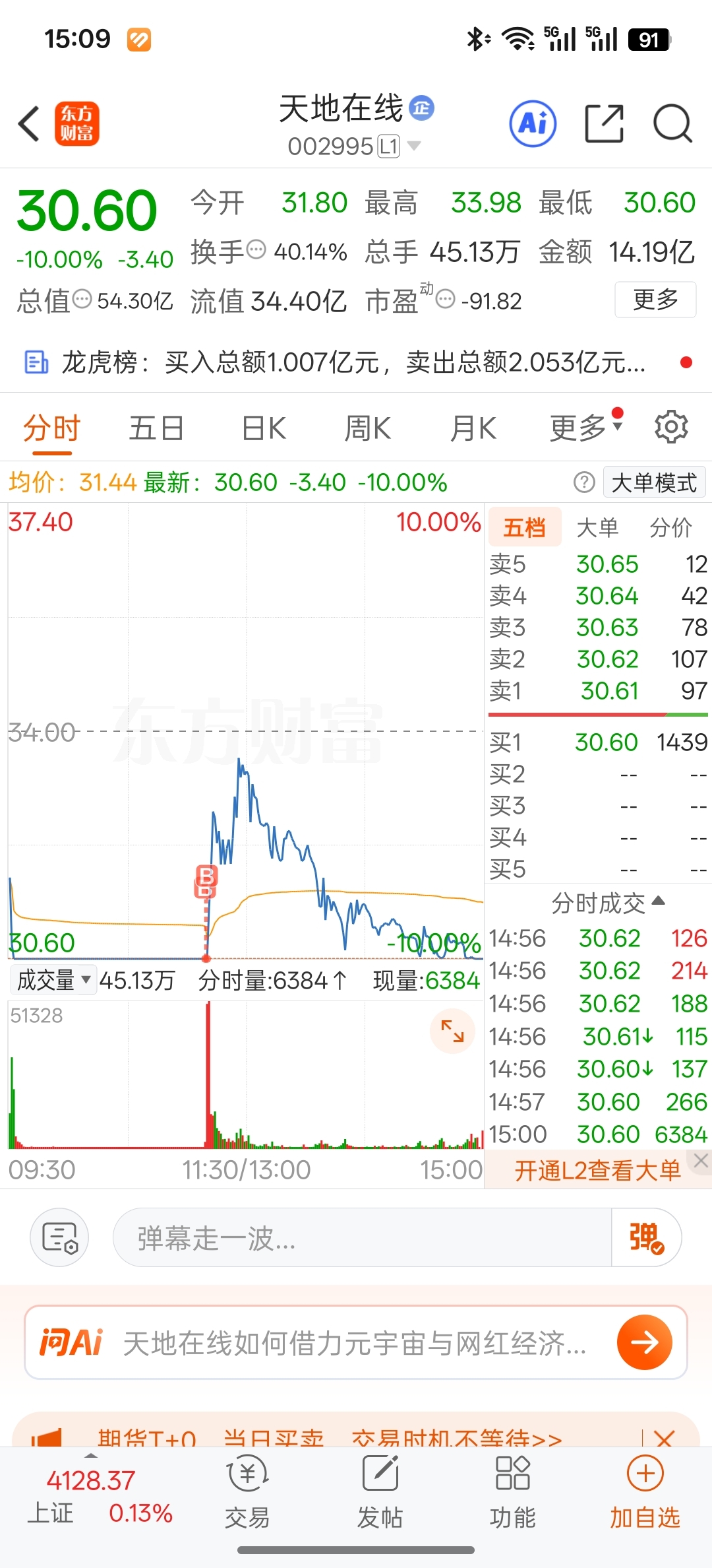 $天地在线(SZ002995)$ 今天真的是盘中富贵了。明天溜了。