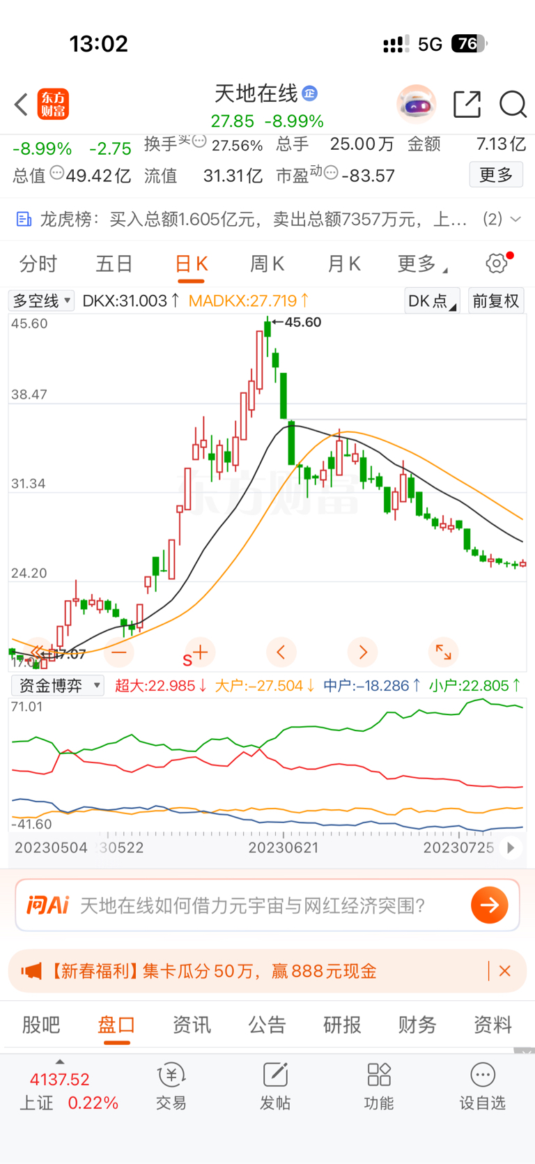 $天地在线(SZ002995)$ 不会按照大顶的趋势走了吧?