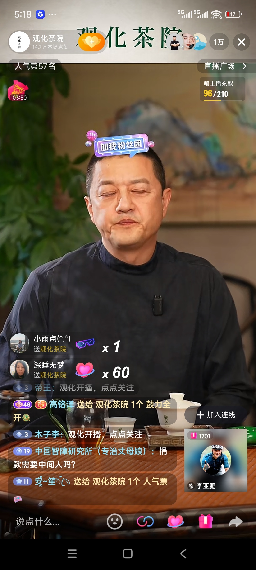 重磅:周日下午,观化茶院开播,李亚鹏说下一步将会推出自家品牌的产品。