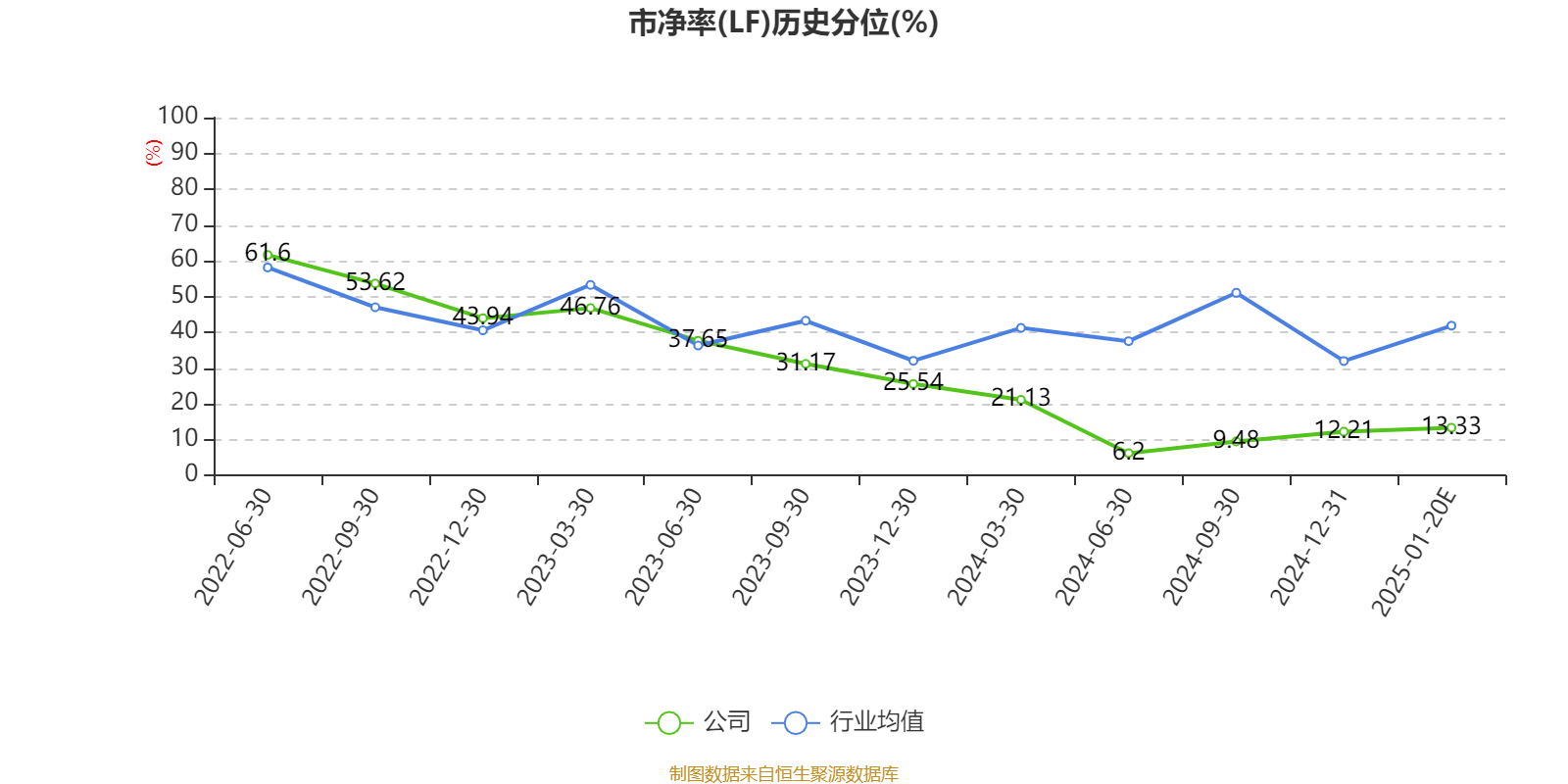 市盈率、市净率为负时,不显示当期分位数,会导致折线图中断。