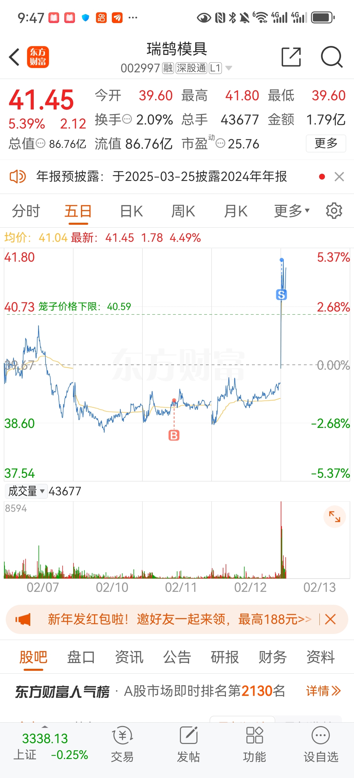 $瑞鹄模具(SZ002997)$ 抓一把就走