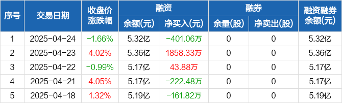 瑞鹄模具:融资净偿还401.06万元,融资余额5.32亿元(04-24)