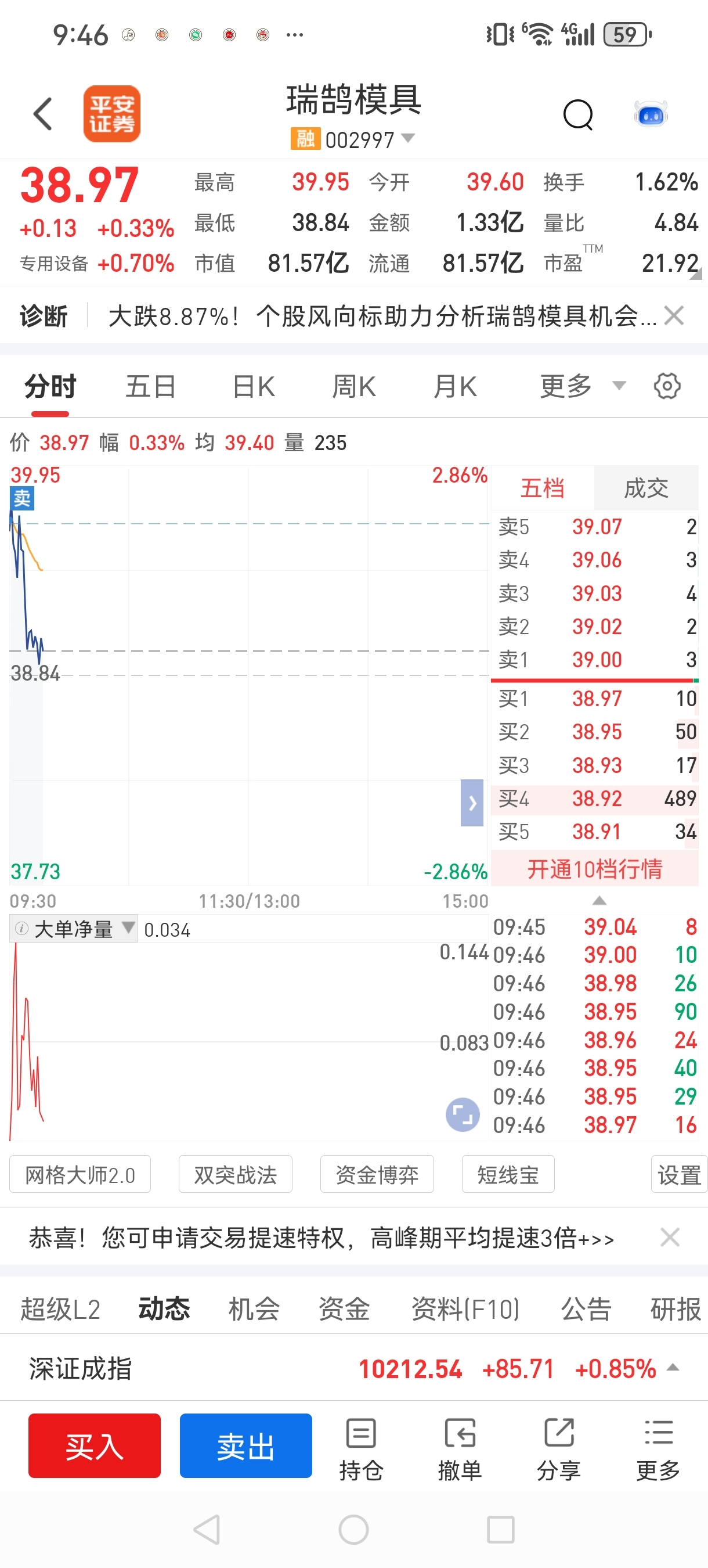 $瑞鹄模具(SZ002997)$ 开盘就跑,赚一顿火锅钱。
