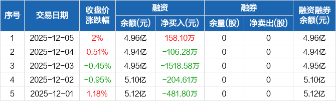 瑞鹄模具:融资净买入158.1万元,融资余额4.96亿元(12-05)