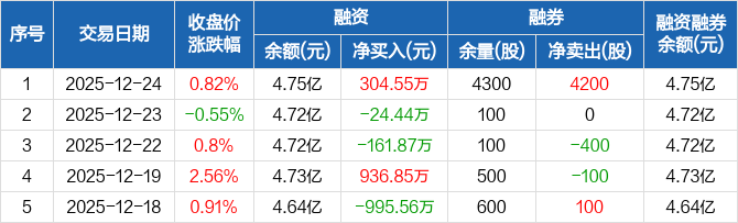 瑞鹄模具:融资净买入304.55万元,融资余额4.75亿元(12-24)