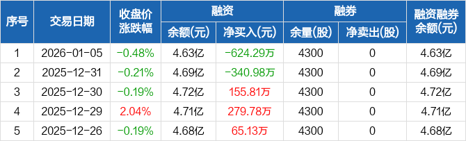 瑞鹄模具:融资余额4.63亿元,创近一年新低(01-05)