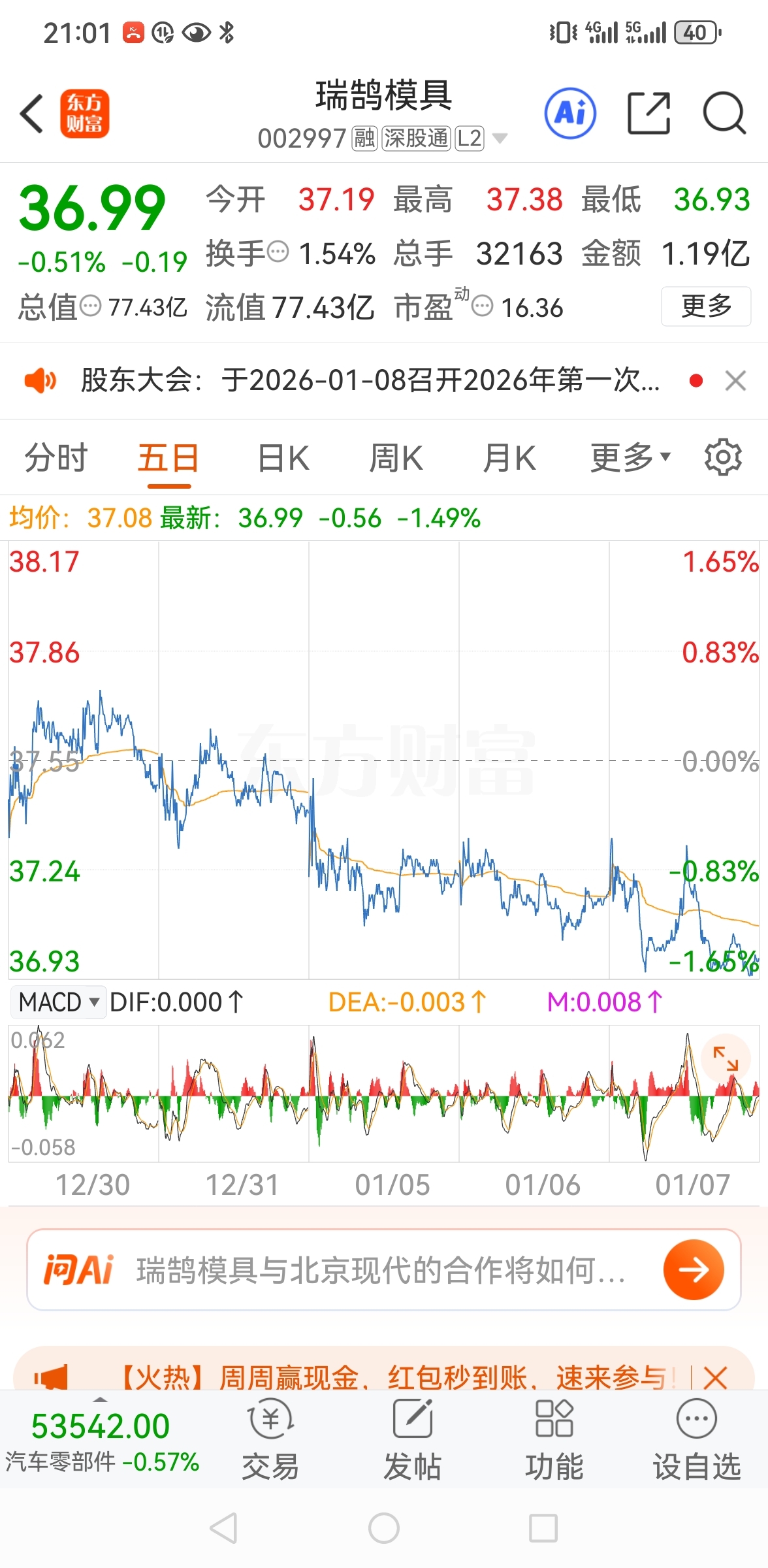 $瑞鹄模具(SZ002997)$ 大盘天天涨这票天天绿,我说错了吗?还删我帖子?