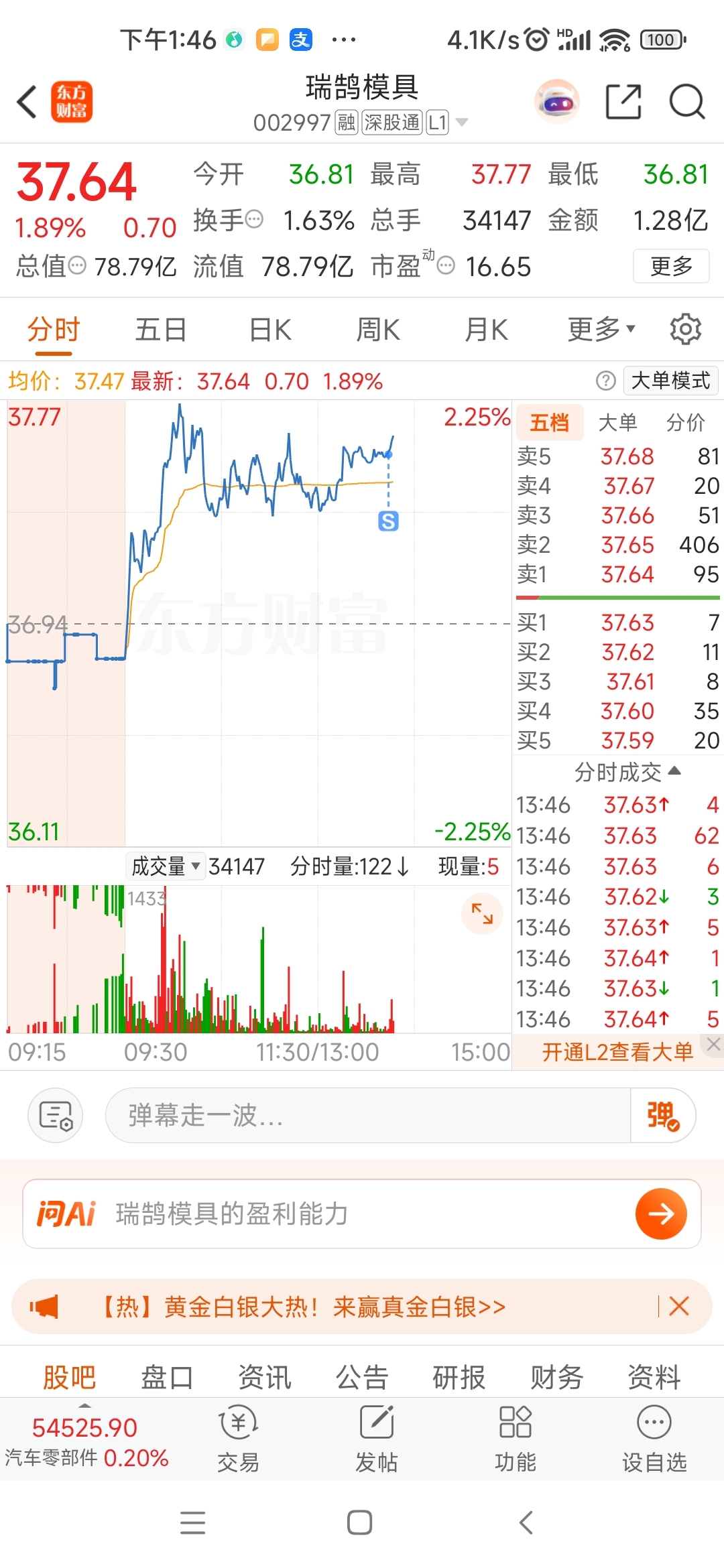 $瑞鹄模具(SZ002997)$ 一卖就涨