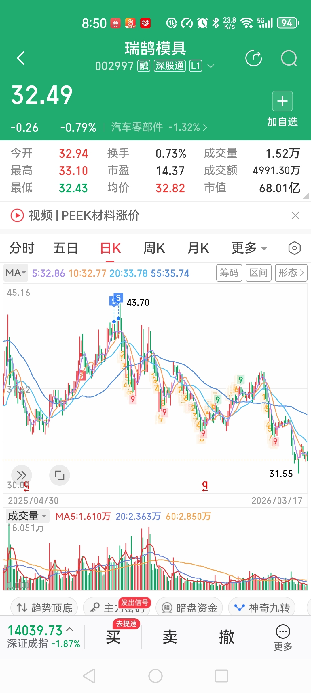 $瑞鹄模具(SZ002997)$ 卖了股,买的湖南裕能!现在可以换回来吗